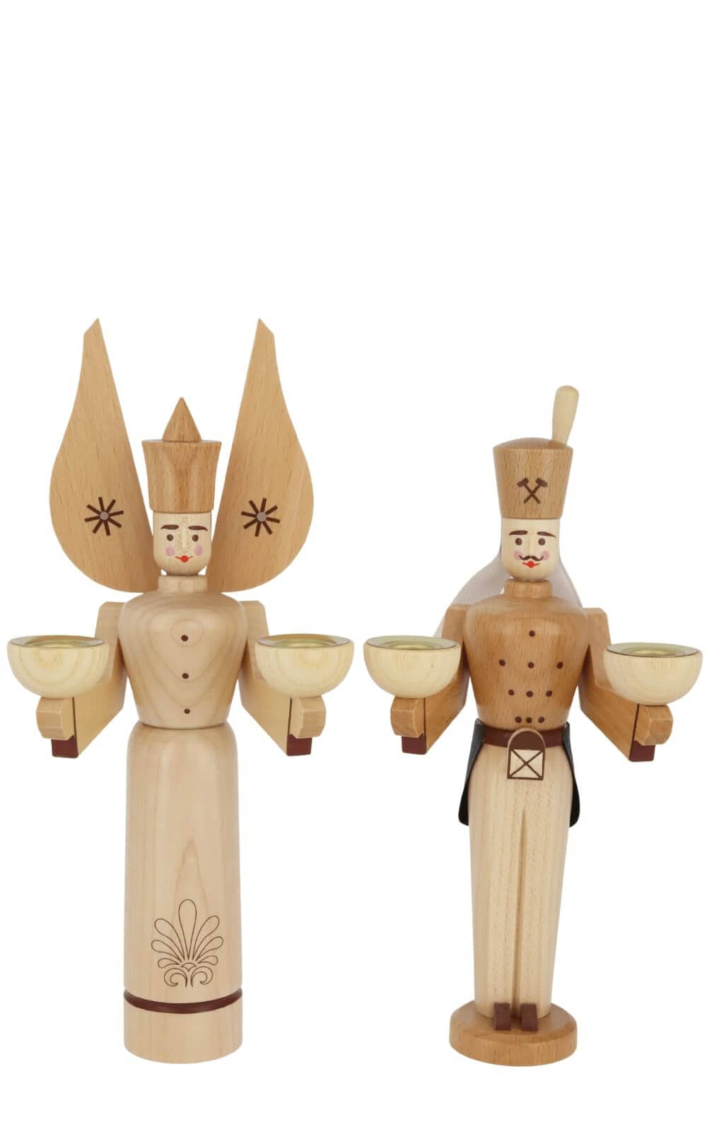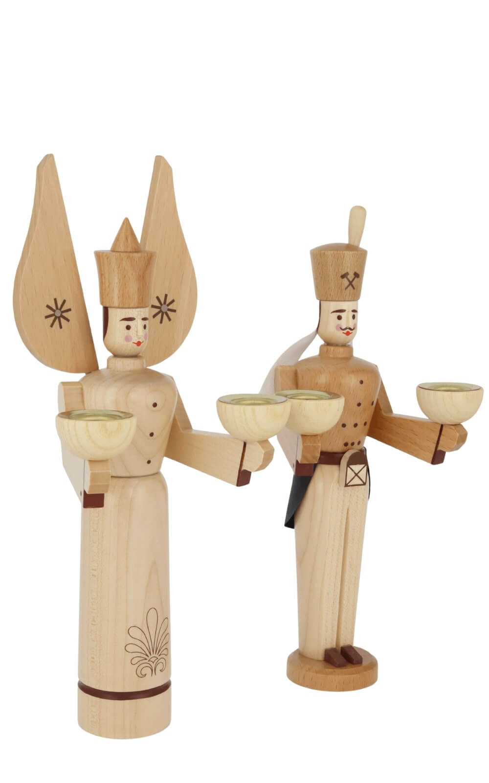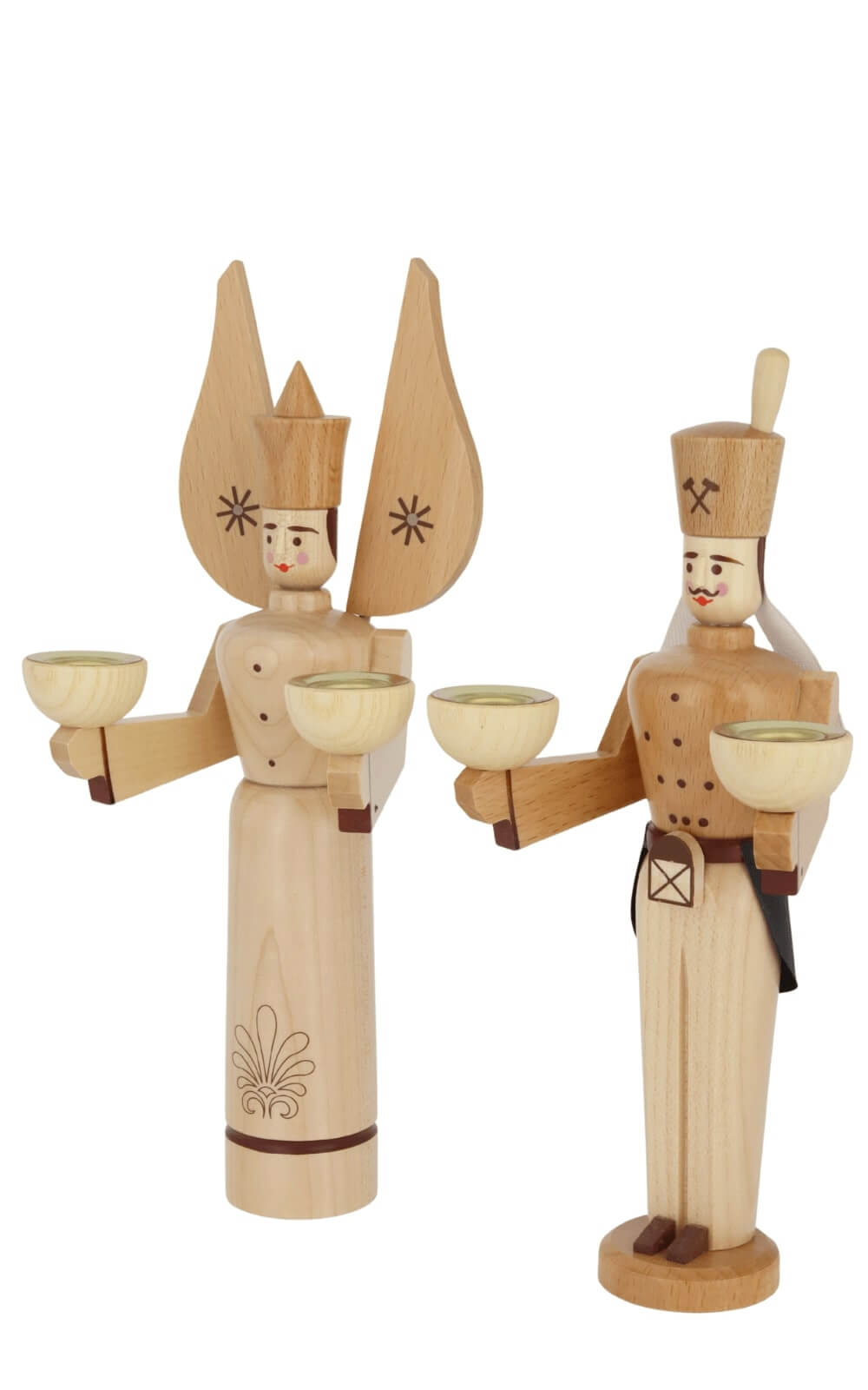 Bergmann und Engel für Wachskerzen, natur von Volkskunstwerkstatt Eckert aus Deutschneudorf im Erzgebirge