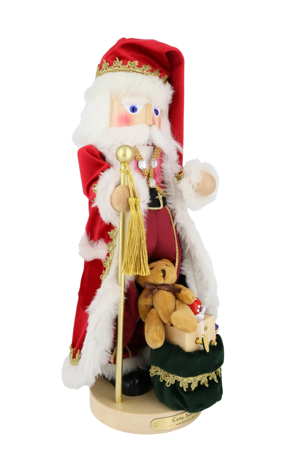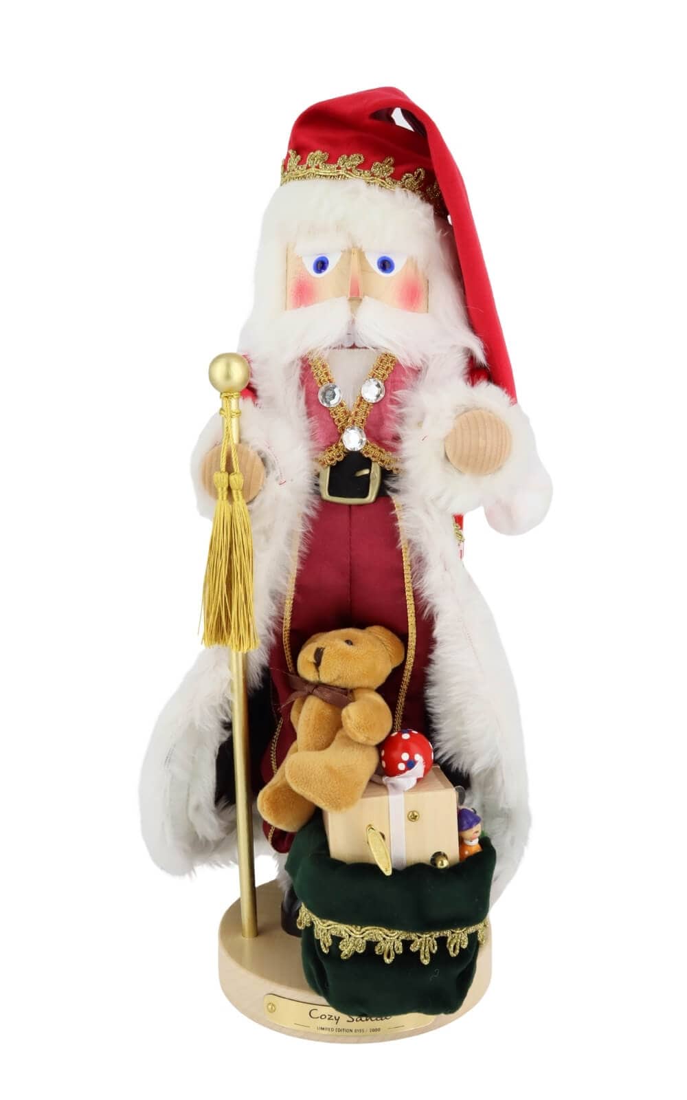 The first words, that come to mind when looking at the Cozy Santa nutcracker, are probably "extraordinary"and"detailed". Crafted from a variety of native woods including maple, beech, alder, ash, spruce, linden and pine, this masterpiece exudes an unmistakable authenticity and warmth. Each of the 49 cm high figures is carefully handcrafted in the heart of the Ore Mountains, making each nutcracker unique. In terms of color, the figure is natural and atmospheric design, which emphasizes the festive character.