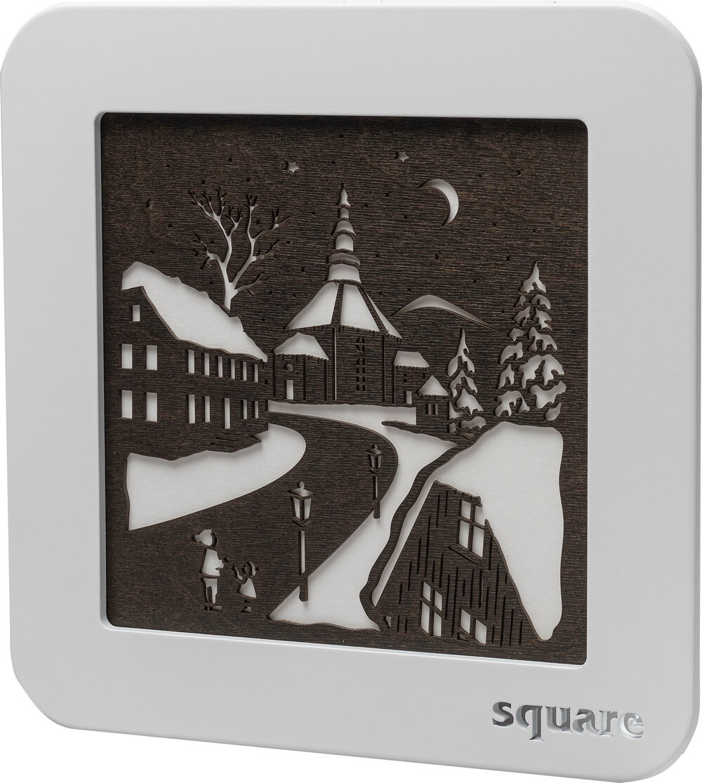 Illuminated by an energy-saving LED - strip with 13 warm white LEDs, the square provides efficient and atmospheric lighting, which highlights every detail of the artistically designed motif. The integrated timer function allows, the light to be switched on automatically for six hours and reactivated at the same time every day,, guaranteeing convenience and energy efficiency.