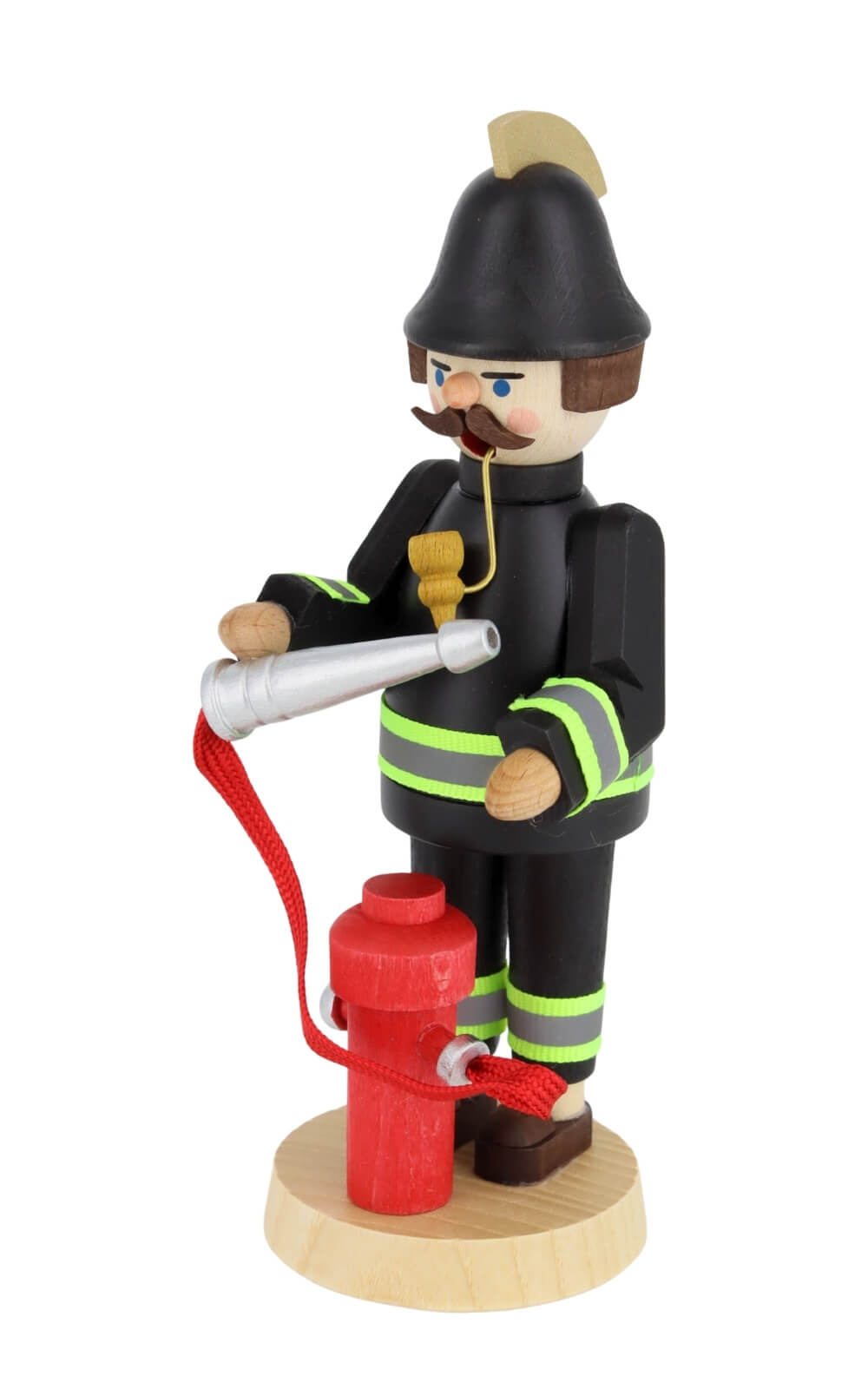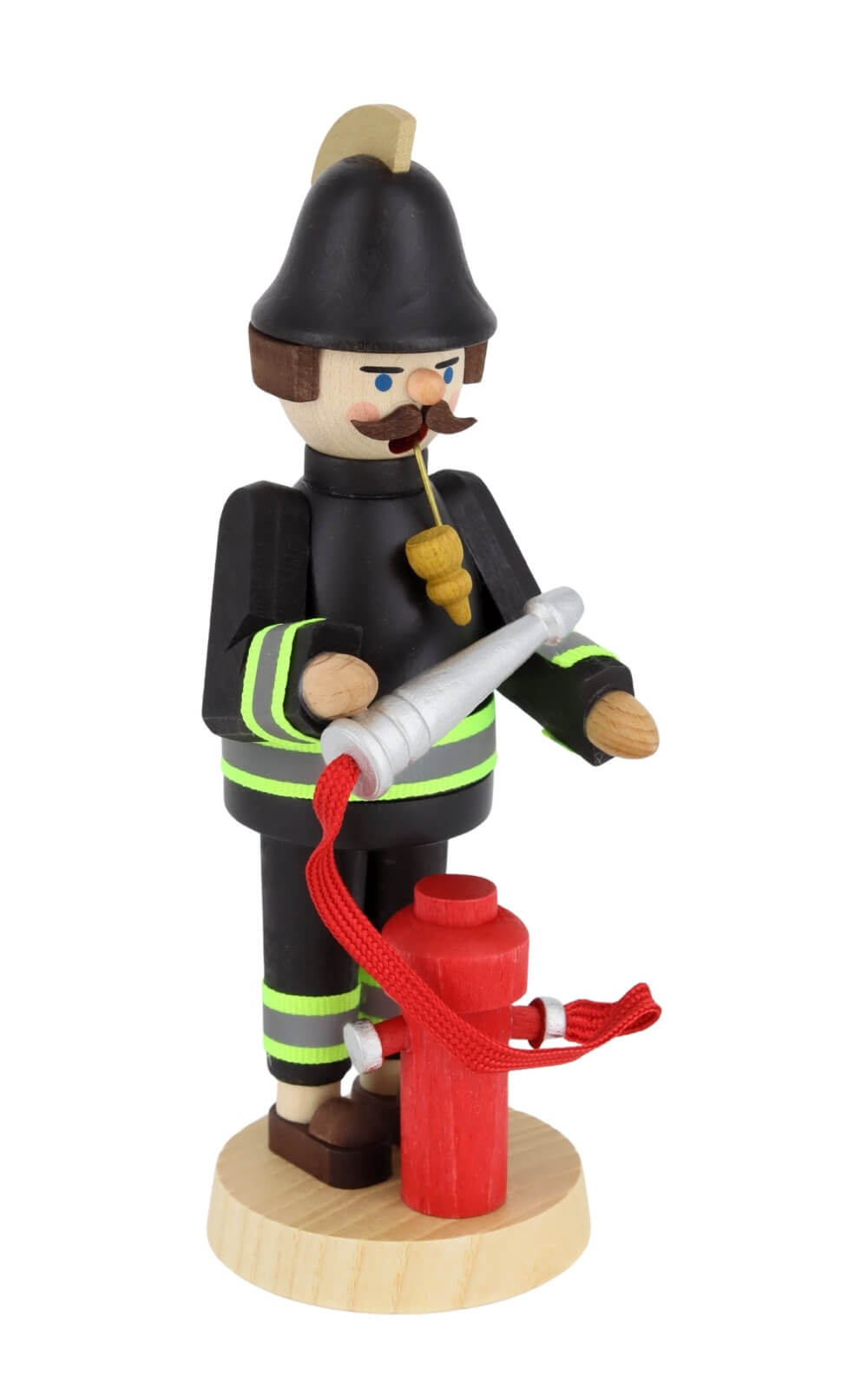 The incense figure Firefighter by Richard Glässer, crafted in the spa town of Seiffen in the Erzgebirge, represents the finest in traditional craftsmanship. Made with great attention to detail, this figure is hand-carved from local woods such as maple, beech, alder, and spruce. This handcrafted masterpiece embodies authentic German craftsmanship and brings a piece of Erzgebirge tradition into any home.