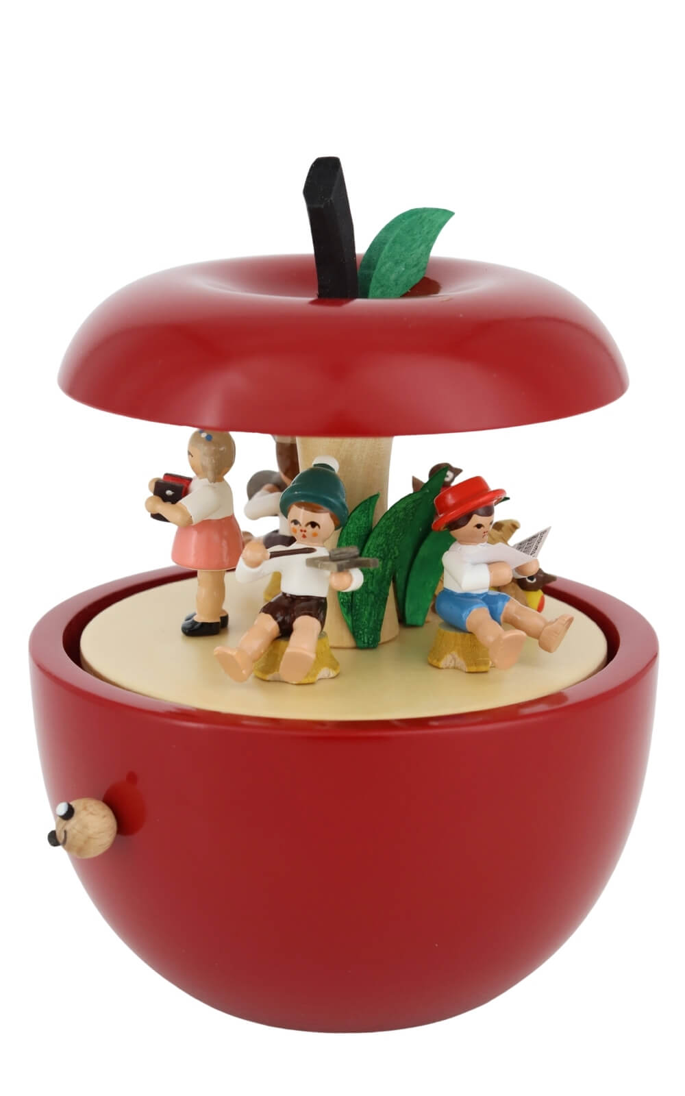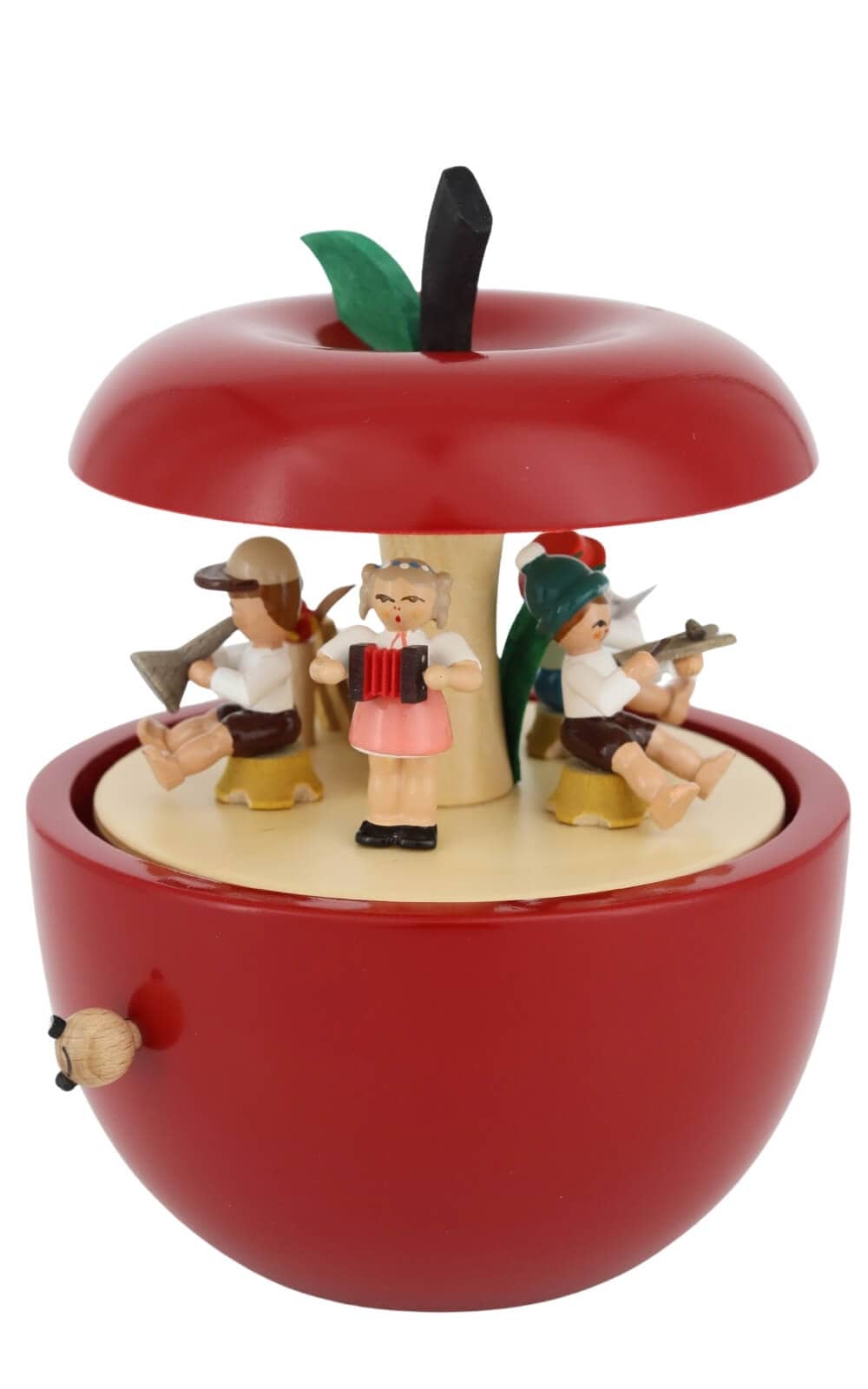 Spieluhr Apfel Kinderkonzert mit der Melodie „Kleine Welt“, 15 cm von Richard Glässer – Musikalische Handwerkskunst aus dem Erzgebirge