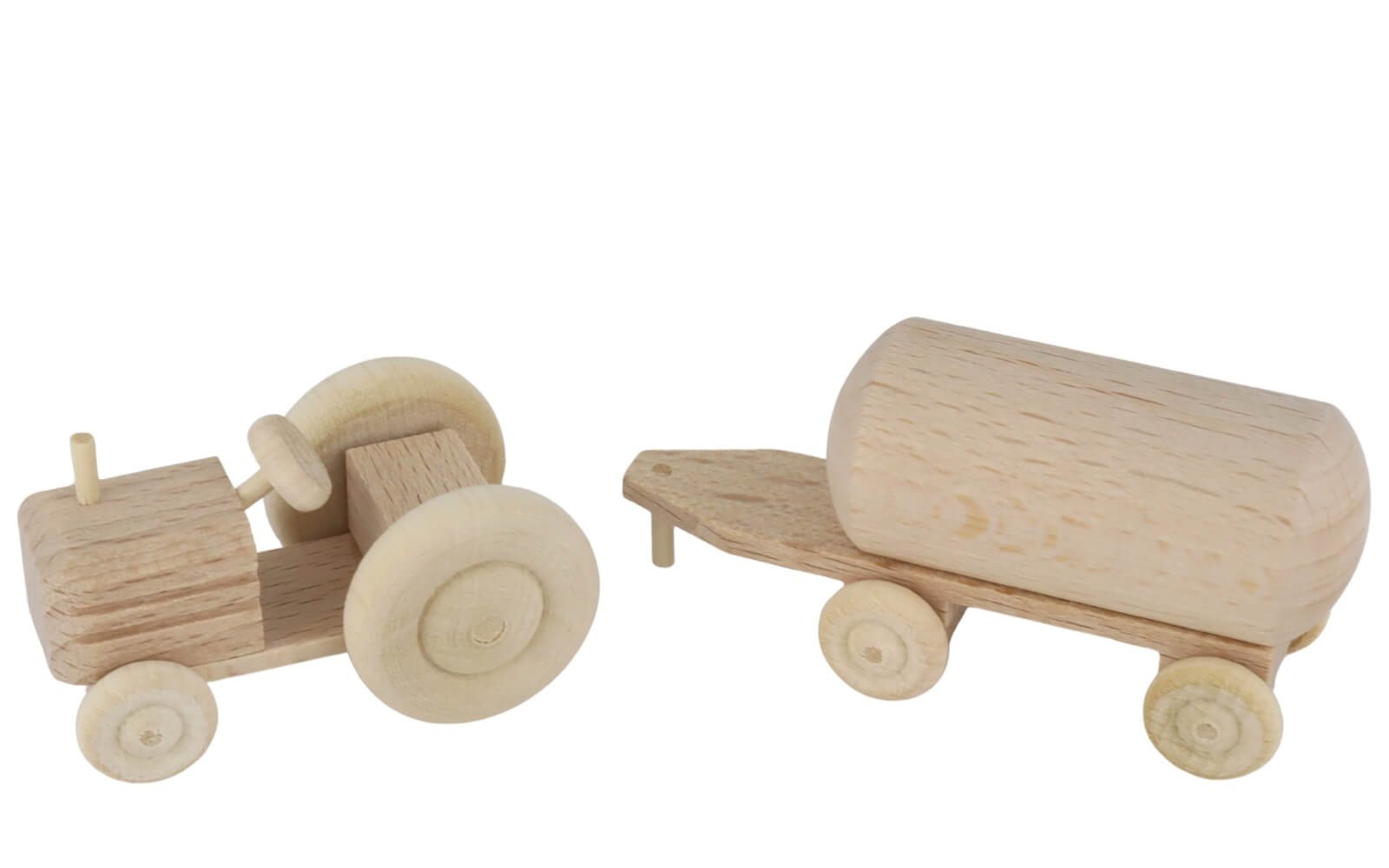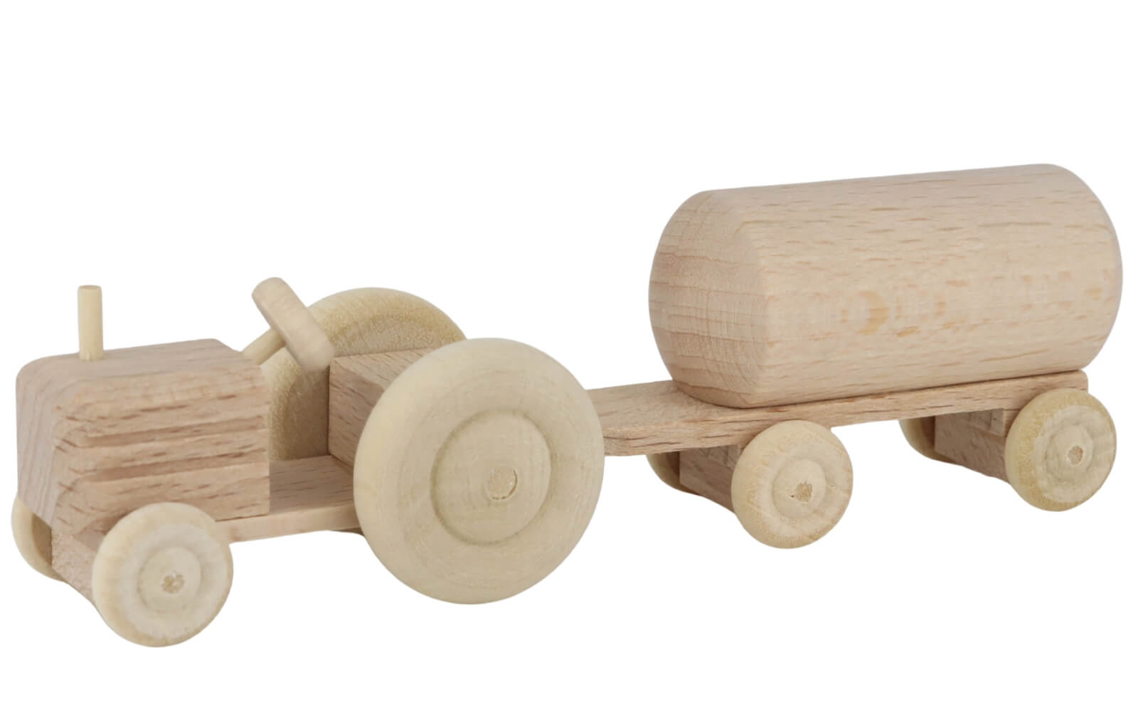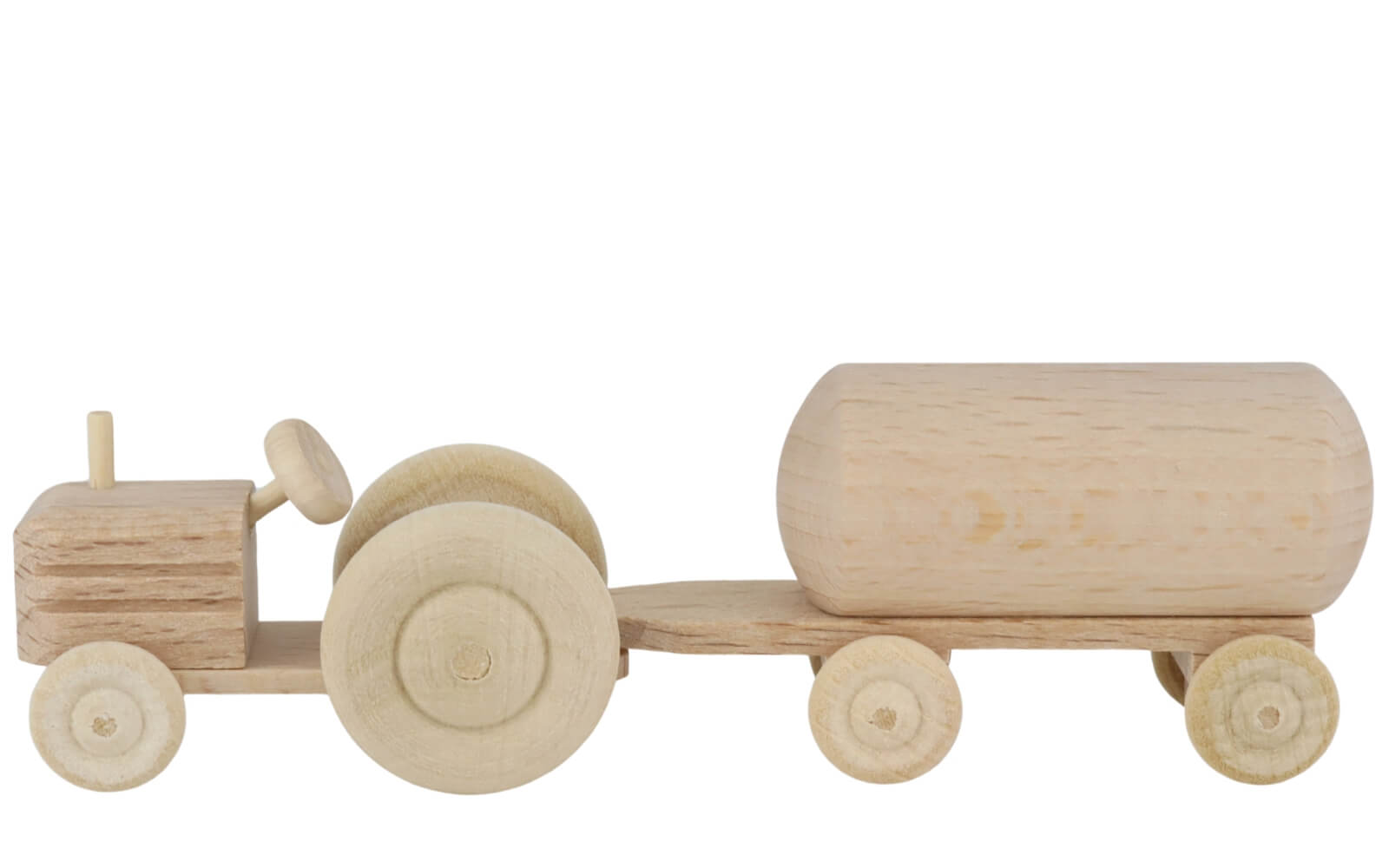 Traktor mit Anhänger Tank, natur – Handgefertigtes Holzspielzeug aus dem Erzgebirge