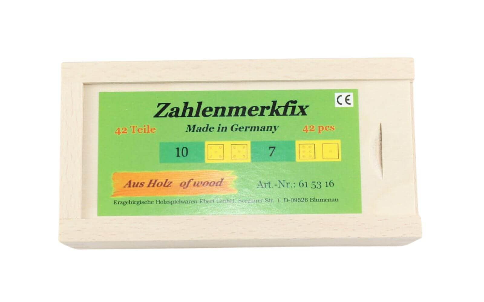 Hergestellt in Olbernhau im Erzgebirge, steht das Produkt für deutsche Handwerkskunst und Qualität. Das Zahlenmerkfix ist ein perfektes Beispiel für das Können der Erzgebirgische Holzspielwaren Ebert GmbH, einem Unternehmen, das seit Jahren qualitativ hochwertige Spielwaren produziert.